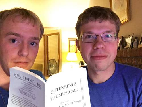 GUTENBERG! THE MUSICAL! is a musical parody which takes the form of a backers’ audition for a new musical about Johannes Gutenberg. Two aspiring playwrights present their historically inaccurate interpretation of the invention of the printing press. The composer Bud and librettist Doug completely believe in the show and will do anything to get it to Broadway. They craft and perform an egotistic yet passionate Gutenberg, a Satan-worshiping monk who wants to keep people from reading, and a full cast of other wacky characters. The night of their piece’s public debut, not only do they have to present the show’s songs and scenes, but they also have to explain the “brilliant” motivations behind each part to convey the full meaning to their audience.